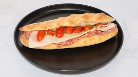 Με σαλάμι αέρος, provolone, ντοματίνια & pesto βασιλικού